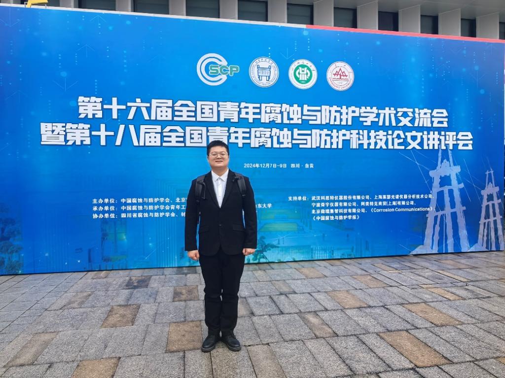 127日至9日,bevictor伟德官网教师吴嘉豪博士参加了在四川省自贡市举办的“第十六届全国青年腐蚀与防护学术交流会暨第十八届全国青年腐蚀与防护科技论文讲评会”。全国青年腐蚀与防护学术交流会与科技论文讲评会是每两年一次的系列学术活动,是国内规模化、系列化的学术会议之一。旨在进一步加强腐蚀与防护领域内青年科技工作者间的互相学习与交流,促进腐蚀与防护理论与企业实际相结合,提高广大青年科技工作者的学术水平及工程技术水平,推动我国腐蚀与防护事业发展。会议邀请国内知名腐蚀专家对青年科技工作者的科研成果进行点评和指导,促进青年科技工作者的快速成长,进一步推动腐蚀学科的发展。本次会议的主题为“腐蚀·防护·青年·新质生产力”。