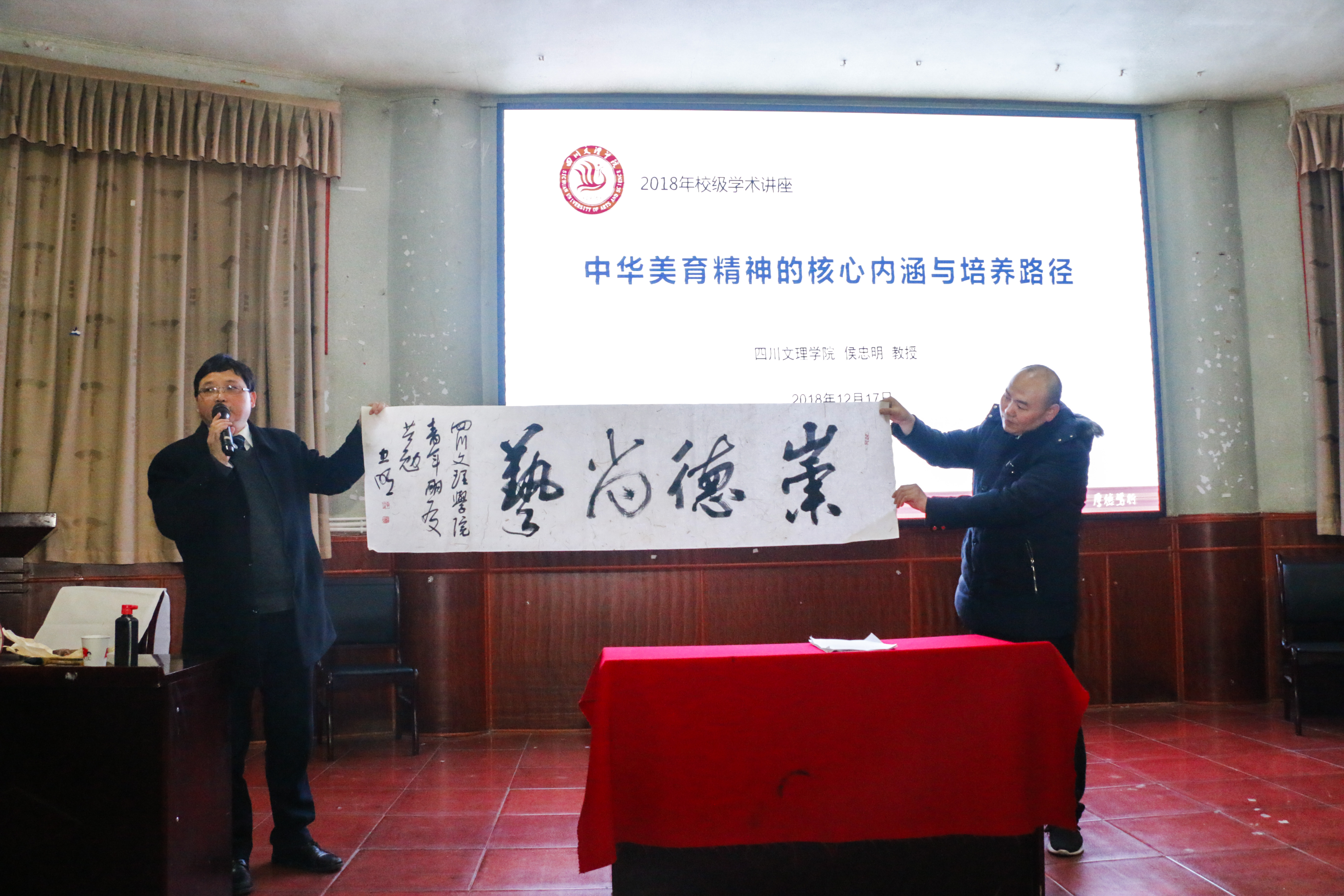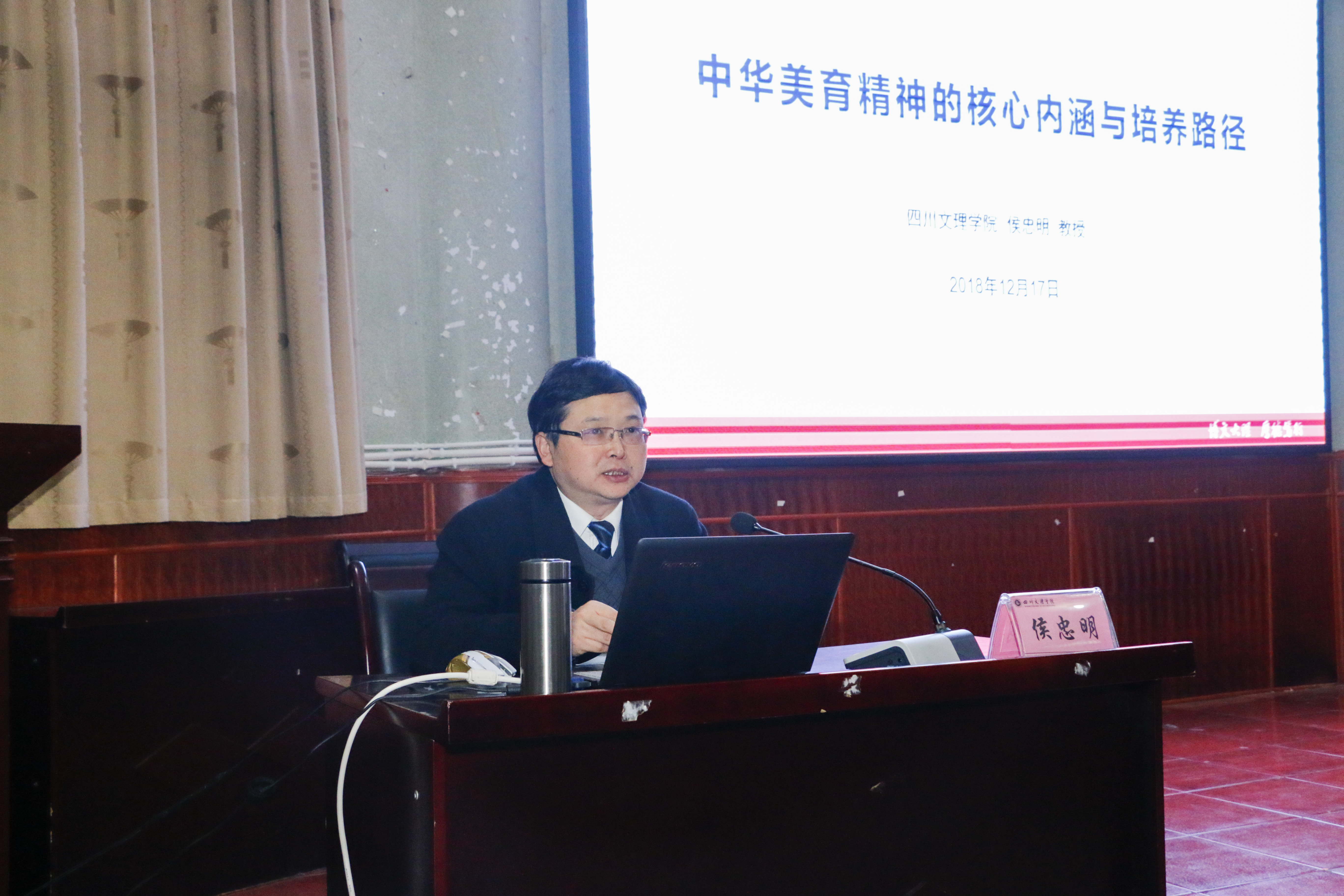 12月17日晚上,四川文理公司党委副书记侯忠明教授在南坝校区学术报告厅作题为《中华美育精神的核心内涵与培养路径》的学术讲座,讲座由公司党总支书记朱朝菊主持。智能制造公司、bevictor伟德官网300余名师生聆听讲座。