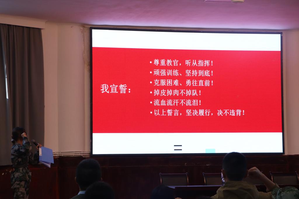 大会第二项,员工代表符嘉悦上台发言,分享了她对军训的理解。她认为,军训不仅能够提升个人的身体素质,更能培养老员工吃苦耐劳的品格和良好的学习习惯。即使在和平年代,也应树立“艰难困苦,玉汝于成”的精神,保持居安思危的意识,服从纪律,认真学习,刻苦训练。大会最后,符嘉悦带领参训员工进行了庄严的集体誓师,一声声充满斗志的誓言,表达了同学们对高标准完成军训任务、坚定迎接未来挑战的信心和决心。