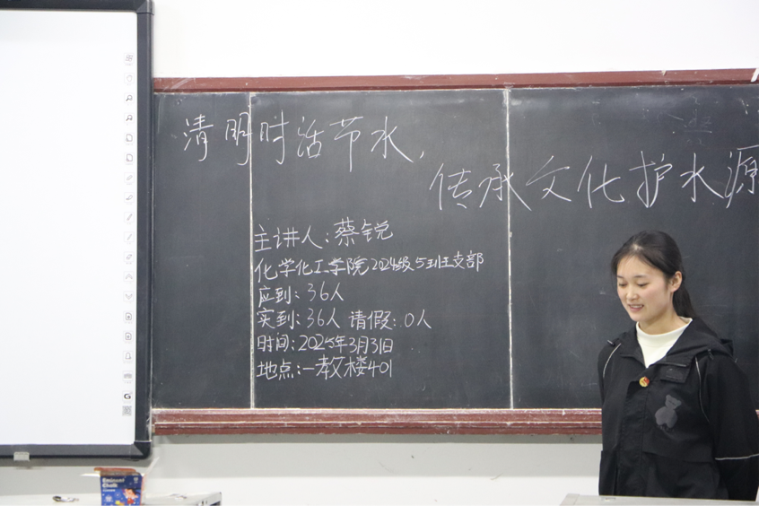 同时,“清明时话节水,传承文化护水源”主题活动也在各支部中热烈开展。各团支部书记以图文结合的形式,深入剖析了水资源现状,用一系列惊人的数据展示全球及我国面临的水资源短缺危机,让同学们深刻认识到节水护水的紧迫性。随后,同学们通过相互交流讨论,深入学习了水资源保护的重要性以及节水的科学方法,并表示将把这些方法运用到实际生活中。