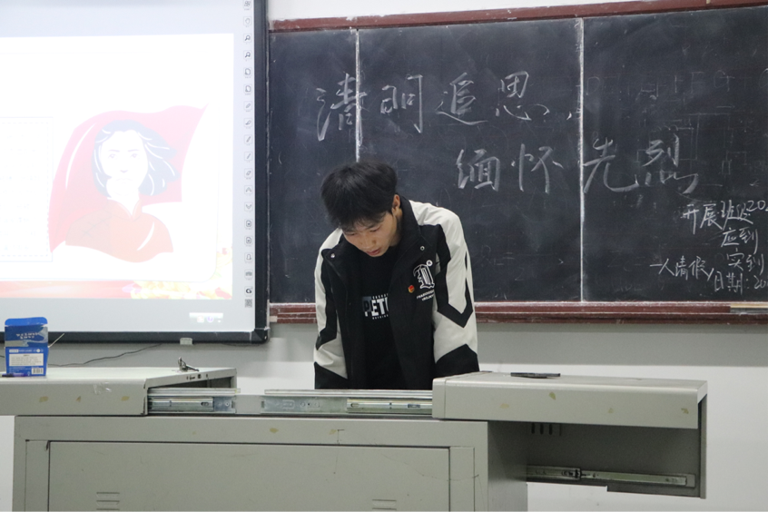 活动伊始,各团支部书记深入介绍了清明节的起源、丰富习俗以及深厚的文化内涵,并带领同学沉浸在千年来的传统节日氛围中,深切感受清明节独特厚重的文化魅力。紧接着,各团支部书记带领同学们回顾了革命先烈们为国家独立、民族解放而英勇奋斗的壮丽篇章,讲述了诸如董存瑞、黄继光等先烈的英勇事迹,让同学们深刻感受到先烈们无私奉献和舍生忘死的伟大精神。活动最后,各团支部书记呼吁同学们铭记历史,缅怀先烈,传承革命英烈的革命精神,为实现中华民族伟大复兴的中国梦贡献青春力量。